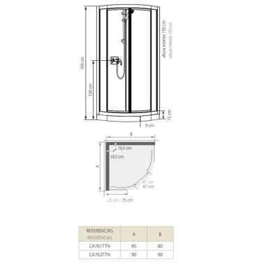 Las cabinas de ducha KINEPRIME GLASS angulares presentan 2 medidas - de 80 y de 90 - 2 puertas correderas con sistema de liberación de puerta para facilitar las tareas de limpieza. Grifería termostática con ducha de mano multijet.