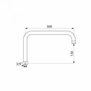 Caño tubo giratorio superior de la marca Delabie, diámetro 22mm, altura 130mm, longitud 300mm, con tuerca de 3/4" para una fácil instalación en diversas configuraciones.