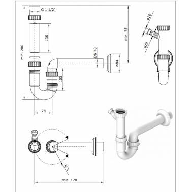Sifón para fregadero modelos Valet, Reno y Farmhouse marca Unisan