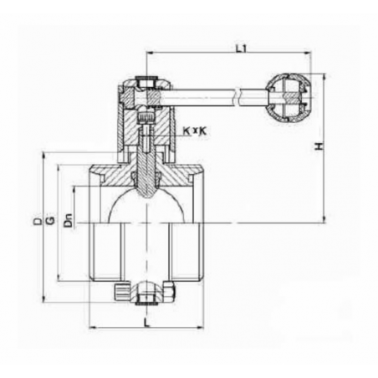 Válvula mariposa con extremos roscados de 4" de diámetro nominal. Construida en acero inoxidable AISI 304, ideal para aplicaciones sanitarias. El elastómero es de EPDM, resistente químicamente y térmicamente. Extremos roscados según DIN 11851. La válvula soporta una presión máxima de trabajo de 10 bar y una temperatura máxima de 120ºC. El accionamiento manual permite 3 posiciones. Diseño optimizado para fácil limpieza y montaje, además de ser fácilmente automatizable. Pulido sanitario con Ra 0,8 µm y bajo torque. Dimensiones: Dn 100 mm, L 108 mm, D 159 mm, G 130 x 1/4”, H 129 mm, L1 160 mm, K x K 11 x 11 mm. Peso: 5,450 kg.