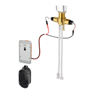 La unidad higiénica mural de Franke KWC para grifería monomando F5L está concebida para entornos donde la higiene y la seguridad sanitaria son prioritarias. Con un saliente de 100 mm, esta unidad permite la descarga higiénica automática y la desinfección térmica programada. El bloque funcional incorpora dos cartuchos de electroválvula y una unidad de control electrónica que se instala en la pared, protegida por una caja de montaje con cubierta de plástico de 150 x 80 mm. Funciona tanto con batería (6 V CC) como con fuente de alimentación de red, ofreciendo flexibilidad en la instalación. Incluye activación de descarga cada 24 horas, registro de datos estadísticos, y posibilidad de parametrización mediante control remoto bidireccional (opcional). El compartimento de batería o el transformador deben adquirirse por separado. Esta unidad representa una solución profesional y completa para la prevención de la proliferación bacteriana en redes de agua, ideal para hospitales, laboratorios y baños públicos con altos estándares sanitarios.