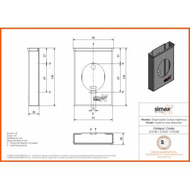 Dispensador de bolsas higiénicas en acero inox brillante SIMEX