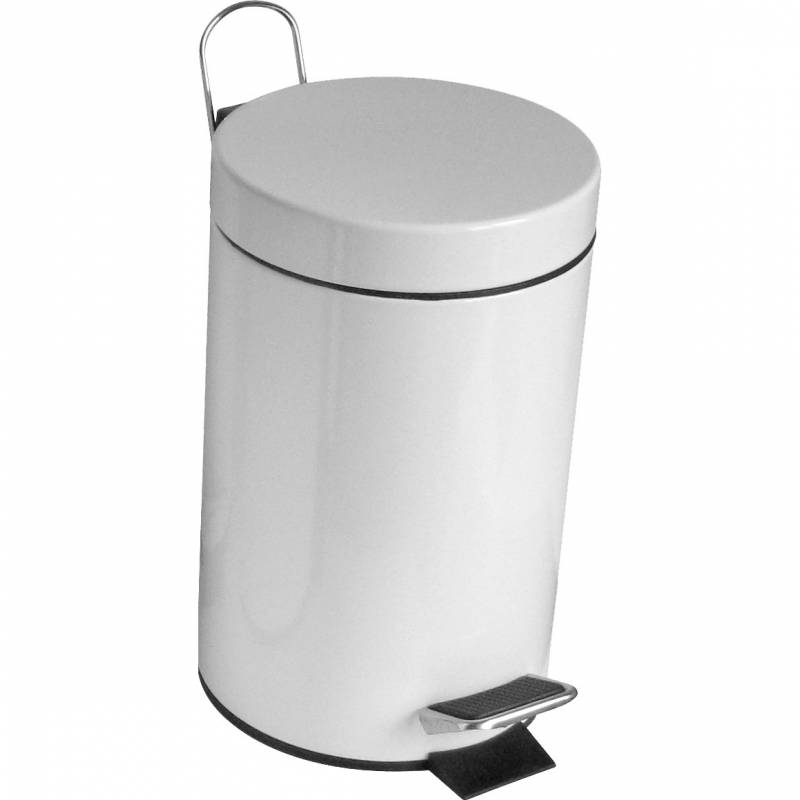 Papelera de pedal con capacidad de 12 L blanca con cubo interior de plástico y material fácil de limpiar con concepto anti-fuego