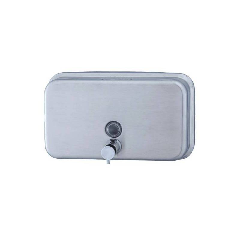 Este dosificador de jabón horizontal en acero inoxidable satinado es una opción ideal para aquellos que buscan un producto duradero y elegante. Su acabado satinado proporciona resistencia al desgaste y la corrosión, mientras que su diseño horizontal facilita un dispensado eficiente y cómodo en baños de alto tráfico.