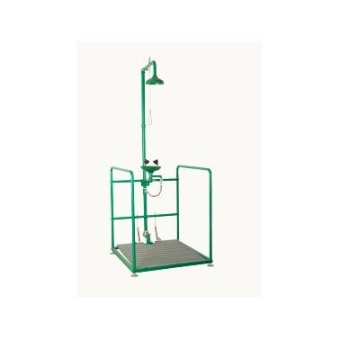Conjunto de ducha sobre puerta y lavaojos funcionamiento palanca manual lateral fabricado en acero galvanizado pintado epoxy color verde.