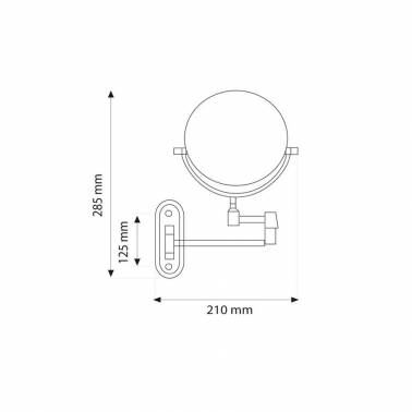 Espejo facial giratorio de 360º con fijación mural y desplazamiento den 180º. Dispone de dos opciones de visión, un lado de ampliación y el otro lado de visión normal. Sus dimensiones son 285mm de alto x 210mm de ancho
