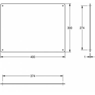 El material tiene un espesor de 1,0mm, con cuatro puntos de fijación visibles.