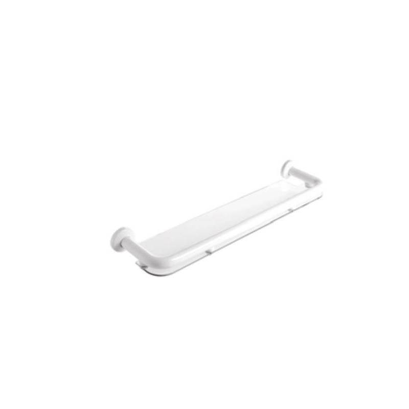 Estante con base de vidrio y tubo de acero galvanizado sin soldaduras y anclaje a pared 79,2x18,5x7,2cm marfil