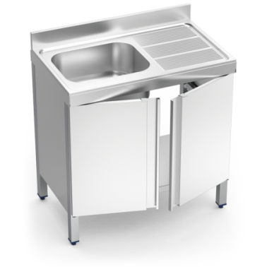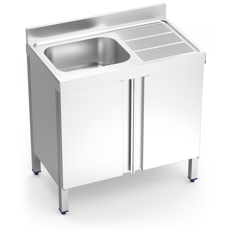 Fregadero con escurridor derecho en acero inoxidable con puertas abatibles de 1400x700x850 mm