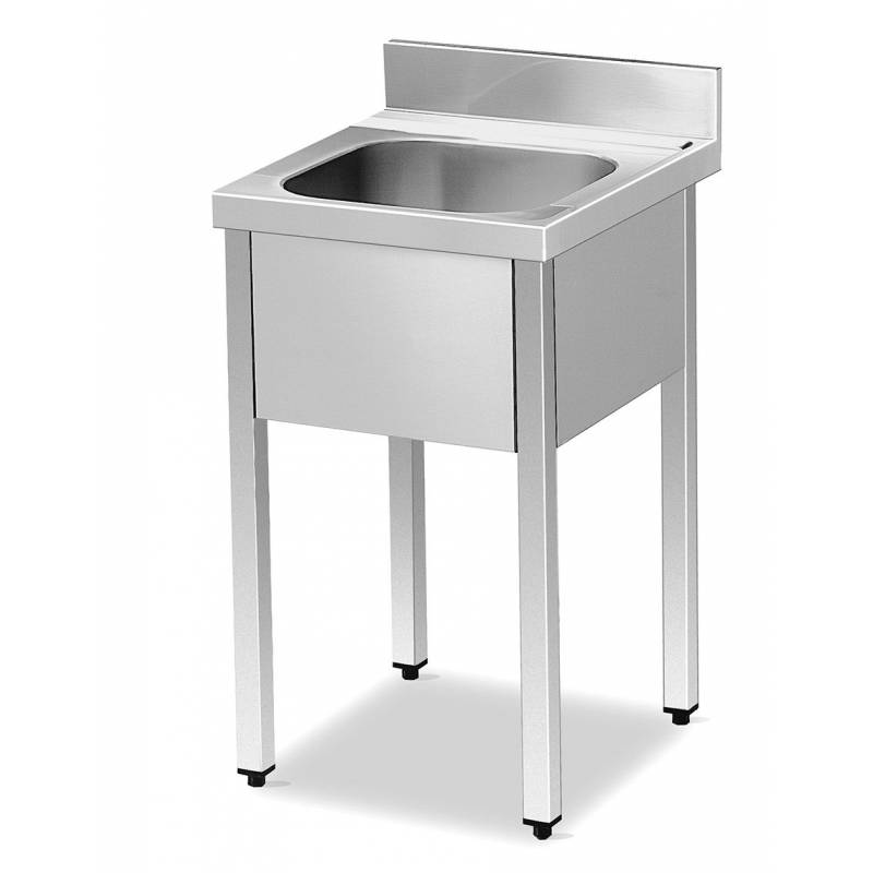 Fregadero industrial fabricado en acero inoxidable AISI 304 acabado satinado con bastidor de 700, un estante y un seno embutido con protección insonorizante con medidas 700x700 Nofer. Está construido de un material duradero y resistente a la corrosión. Adecuando para instalaciones profesionales y de gran frecuencia de uso. Tiene patas extensibles, hasta una altura total del mueble de 900mm.