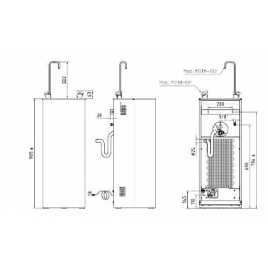 Fuente con Unidad de Enfriamiento Tipo Banco de Hielo (agua no estancada) fabricado en acero inoxidable AISI-304 (1.4301) de 1mm de espesor, con grifo corto llena- vasos y alto tipo cuello de cisne llena botellas.