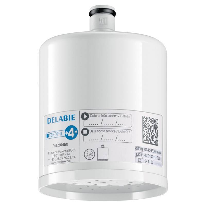 Filtro para grifo y ducha Biofil 4 meses estéril chorro efecto lluvia marca Delabie. Filtración óptima, larga duración y diseño compacto.