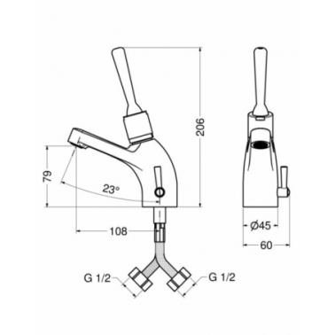 El mezclador temporizado CLASSIC para lavabo con palanca antivandálica de Idral es la elección perfecta para entornos que requieren máxima resistencia y funcionalidad. Su diseño robusto incluye una palanca multidireccional fabricada en latón cromado, que no puede ser desenroscada, garantizando una durabilidad superior frente a actos vandálicos. Este grifo ofrece un cierre temporizado de 15 segundos a una presión de 3 bar (no ajustable), permitiendo un consumo eficiente de agua. La mezcla se realiza mediante una palanca lateral que asegura un control sencillo del flujo y la temperatura. El cuerpo está fabricado en latón cromado de alta calidad, con válvulas de retención y flexibles de acero inoxidable G1/2”, proporcionando una instalación segura y confiable. Este grifo es ideal para presiones de alimentación entre 1 y 6 bar, con un rango recomendado de 2 a 4 bar, y soporta temperaturas de alimentación de 5 °C a 65 °C. Cumple con la normativa EN 816 con una tolerancia de +/- 5 segundos en el tiempo de descarga, asegurando una operación confiable en entornos de alto tráfico como baños públicos o comerciales.