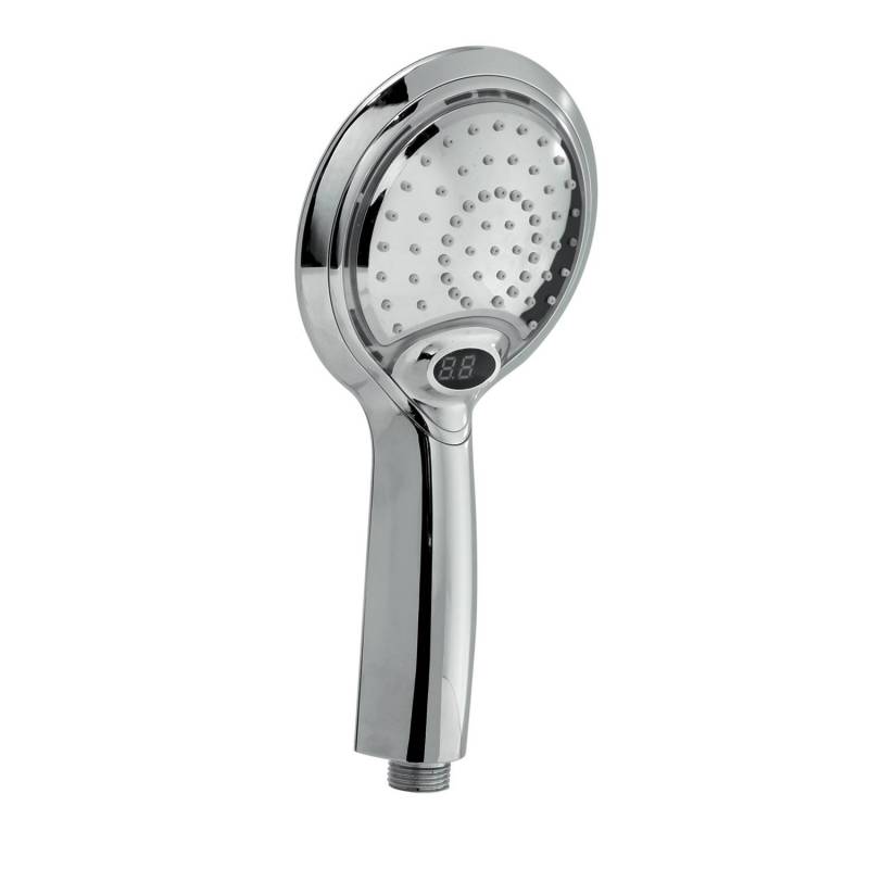 Disfruta de una experiencia de ducha única con el Mango de Ducha 1 Jet Thermo Lighto 00 Cromo. Este innovador mango de ducha cuenta con un LED de 3 colores que cambia según la temperatura del agua, junto con un indicador numérico de temperatura para un control preciso. Fabricado con ABS de alta calidad en un elegante acabado cromo, combina estilo y tecnología. Su conexión universal de 1/2" garantiza una fácil instalación en la mayoría de las configuraciones estándar. Además, ofrece un ahorro de agua del 50% y es fácil de limpiar, lo que lo convierte en una opción práctica y elegante para tu baño. Disfruta de una ducha sensorial y relajante con el Mango de Ducha 1 Jet Thermo Lighto 00 Cromo.