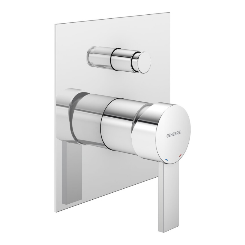 Monomando baño/ducha empotrado con inversor TAU2 cromo marca Genebre: Monomando de baño/ducha empotrado con inversor TAU2 cromo de Genebre, diseñado para ofrecer confort y control en el baño. Acabado cromado que garantiza resistencia y durabilidad.