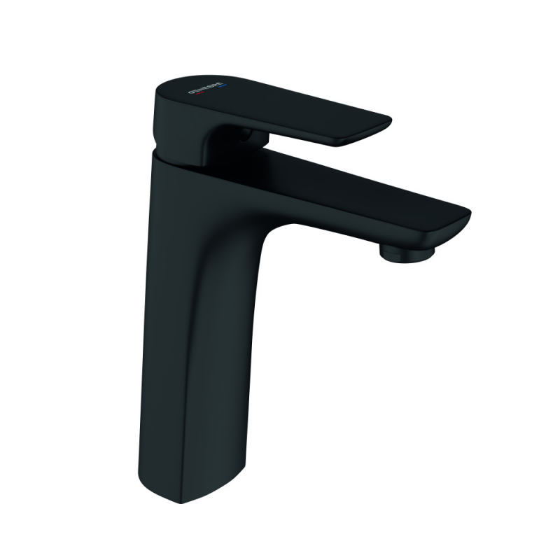 Monomando mezclador de lavabo medio alto para instalación en repisa, acabado negro mate de alta calidad se suministra con latiguillos de conexión de fácil instalación. Sistema economizador mediante 2 posiciones de apertura, primera posición con un ahorro del 50% y segunda a pleno caudal. Dotado de sistema GE-ECO economizador de agua basado en la limitación de caudal del grifo, indicado cuando queremos una restricción de agua.