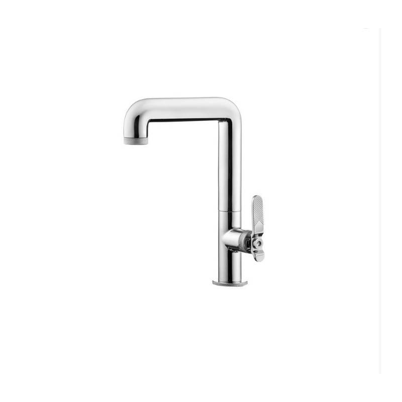 Grifo alto de lavabo sin desagüe semiautomático fabricado en latón cromado con maneta de palanca modelo Strem Galindo