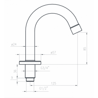 Caño fijo para lavabo, diseñado para montaje en encimera y equipado con aireador estándar para un flujo optimizado de agua. Fabricado en latón con acabado cromado duradero.