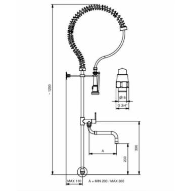 Columna ducha para prelavado vajillas H1200 con grifo a mitad del tubo para instalación grifos/mezcladores sobre encimera Idral