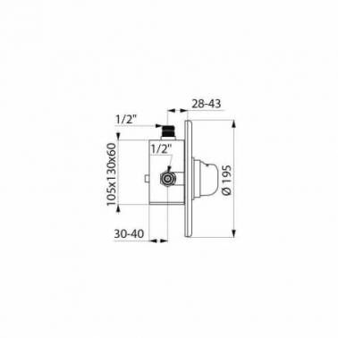 Este modelo incorpora la tecnología Tempomix, que es un sistema monomando (mezclador) que permite al usuario regular tanto la temperatura como el caudal con una única maneta. Su función clave es la temporización automática: el agua se corta sola tras un breve ciclo (30 segundos, según calibración), asegurando un control estricto del consumo de agua. El mecanismo interno, diseñado para una durabilidad intensiva, queda oculto, mientras que solo el amplio rosetón exterior de Ø195 mm permanece visible, ofreciendo un acabado pulcro y profesional.