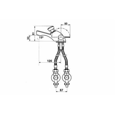 Grifo temporizado mezclador con cuerpo y pulsador en latón cromado, piezas interiores en materiales resistentes a la corrosión e incrustaciones calcáreas.