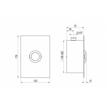 Grifo temporizado de un agua urinario de instalación mural empotrado con apert por pulsador ref 26750 PRESTO
