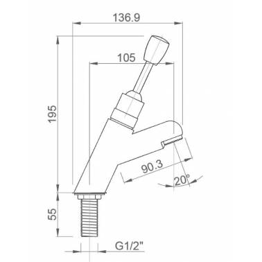 Grifo temporizado para lavabo de un agua activado por palanca con pulsación suave Nofer. El sistema de pulsación suave está pensado especialmente para uso infantil o de la tercera edad ya que facilita el manejo de la grifería temporizada. Sea cual sea la presión de la red, la resistencia de maniobra siempre será por debajo de 1Kg, con este sistema garantizamos que los usuarios puedan accionar el grifo sin ninguna dificultad. Ideal para instarlo en guarderías, colegios, parque infantiles, centros educativos, residencias de mayores, etc. Este grifo está disponible en varias versiones, con pulsación suave, con sistema Eco o con certificación Leed. Montura intercambiable que incluye el mecanismo de temporizado. Construcción robusta, cuerpo fabricado en latón cromado con componentes plásticos en POM. Las dimensiones de la rosca cartucho es M28x1’5mm. El tiempo de actuación prestablecido en fábrica es entre 7 y 3 segundos según la norma UNE-EN 8016s. La temperatura máxima del grifo es de 85ºC, la temperatura recomendable es de 60ºC. La presión máxima es de 5 bar y la mínima es de 0’5 bar, se aconseja trabajar a una presión de 3 bares. El caudal es de 6l/min a una presión de 3 bar. Rociador intercambiable Neoperl M24x1mm con limitador de caudal. Se suministra con filtro plástico antipartículas y los elementos de fijación para instalarlo sobre un lavabo o encimera. Sus dimensiones son 195mm de alto y 136’9mm de ancho.
