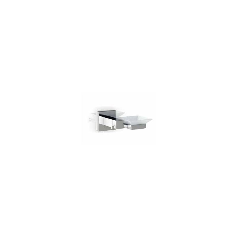 Jabonera fabricada en latón cromado con plato blanco Genwec