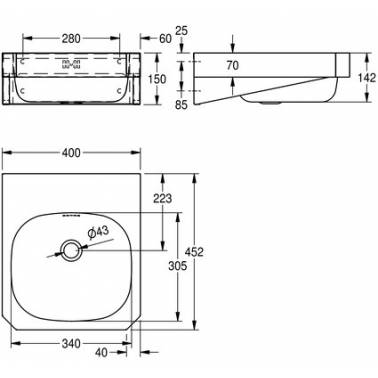 Lavabo mural fabricado en acero inoxidable acabado satinado 400x150x452mm modelo ANIMA marca Franke KWC