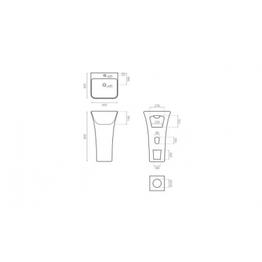 Lavabo de pedestal modelo Cartes con rebosadero integrado, fabricado en porcelana blanca. Con medidas de 450 mm de ancho, 435 mm de profundidad y 835 mm de altura, combina funcionalidad y diseño clásico.