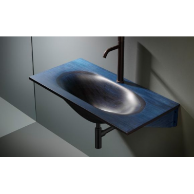 Lavabo rectangular suspendido Laos de 900x450x200 mm con soportes en bambú azul Bathco