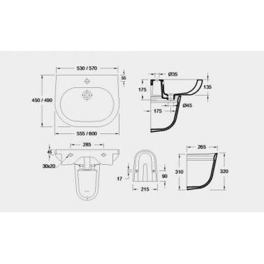 Lavabo mural para pedestal modelo Opus Valadares. Lavabo fabricado en Vitreous China de color blanco. Sus medidas son 61x50x19cm. También está disponible de 56cm. Pedestal compatible 37200002 o pedestal suspendido 37220002K. Kit de fijación incluido. Orificio para el grifo. Tiene garantía de 20 años.