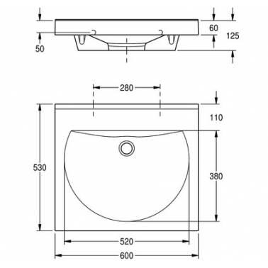 Sus dimensiones son 600x125x530 mm (AxAxP) y las dimensiones de la cubeta son 520x380x90 mm (LxAxH).
