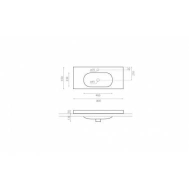 Lavabo sobre mueble o de encastre fabricado en resina modelo Ice 80 Bathco. Lavabo con rebosadero. Sus dimensiones son 800x350x185mm