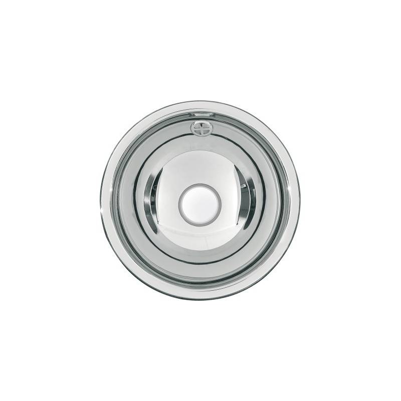 Lavabo semiesférico fabricado en acero de cromo-níquel acabado alto brillo por ambos lados por ambos lados de 260mm de diámetro modelo RONDO marca Franke.