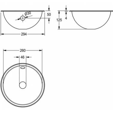 Lavabo semiesférico fabricado en acero de cromo-níquel acabado brillo de 260mm de diámetro modelo RONDO marca Franke.
