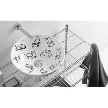 Lavabo redondo sobre encimera crudo con decoración B modelo New Lys Bathco