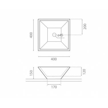 Lavabo sobre encimera fabricado en piedra de color beige sin rebosadero modelo Sumatra Beige. Compatible con pedestal Re.: 00331. Sus dimensiones son 400x400x150mm