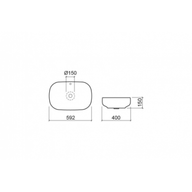 Lavabo modelo Sanibold, en un exclusivo acabado blanco mate, ideal para ambientes modernos y minimalistas. Sus dimensiones son 592 mm de largo x 400 mm de ancho x 150 mm de alto, proporcionando un diseño compacto y funcional. No cuenta con embellecedor y no es compatible con sistemas VDA. Dispone de un rebosadero, pero no tiene orificio para grifería, lo que permite una mayor flexibilidad en la elección de grifería mural o de encimera. Su instalación sobre encimera resalta su diseño contemporáneo, siendo perfecto para baños de estilo vanguardista en hogares, hoteles y espacios comerciales de alta gama. Plano de corte: diámetro 150 mm, facilitando la instalación precisa.