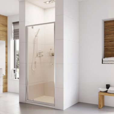 Puerta pivotante Safira de 790x1900 mm (790 x 1900 mm) con acabado cromado. Ideal para cabinas de ducha de diseño elegante y fácil acceso.