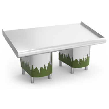 Mostrador de frutería con ajuste de altura. Este mostrador está diseñado para adaptarse a las necesidades de diferentes establecimientos, proporcionando una solución versátil y funcional para la exposición y manejo de frutas y verduras. Fabricado completamente en acero inoxidable AISI 304, garantiza durabilidad y resistencia. Con unas dimensiones de 2911x950x730/955 mm, el mostrador incluye tacos regulables que permiten incrementar la altura hasta 50 mm más, facilitando la adaptación a distintos entornos. Está equipado con desagües y mangueras desagües para una gestión eficiente de residuos líquidos, así como con puertas desmontables que facilitan la limpieza y el mantenimiento. Además, se incluye un juego de adhesivos de hierba para los frentes, mejorando la presentación visual de los productos expuestos. Este mostrador es ideal para fruterías y supermercados que buscan una solución robusta y atractiva para sus espacios de venta.