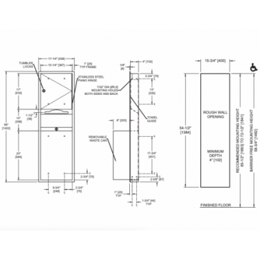 Este dispensador de toallas de papel y cubo de desechos modelo Traditional, diseñado por ASI, ofrece una gran capacidad para entornos de alto tráfico. Capaz de almacenar 600 toallas de papel de pliegue C o 800 toallas de pliegue múltiple, cuenta con un sistema de autoalimentación que asegura un suministro continuo. El cubo de residuos tiene una amplia capacidad de 68 litros, ideal para reducir la frecuencia de vaciado, y está fabricado en acero inoxidable para mayor durabilidad. Este modelo sobresale 205 mm de la pared, lo que lo hace práctico para espacios donde el montaje empotrado no es viable. El compartimento cerrado garantiza la seguridad, impidiendo el acceso no autorizado. Sus dimensiones generales son 17-1/4″ x 56″ x 12-1/4″ (438 x 1422 x 310 mm), y requiere una abertura en la pared de 15-3/4″ x 54-1/2″ x 4" (400 x 1384 x 102 mm). Ideal para ambientes exigentes que buscan funcionalidad y robustez.