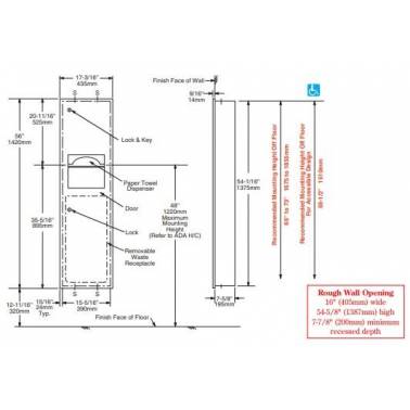 Recipiente de desechos y dispensador de papel toalla para empotrar marca Bobrick