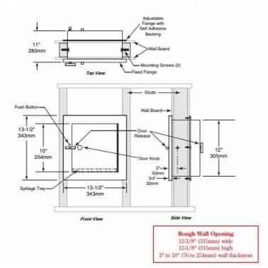 Sus dimensiones son 343mmx343x76 a 254mm de espesor de la pared.