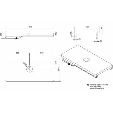 Repisa de baño de 100 para lavabo visto con orificio en color blanco o nogal modelo Emma marca Unisan