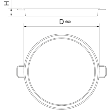 Paellera de 22 raciones, con un diámetro de 660 mm, fabricada en acero esmaltado para una máxima resistencia y durabilidad. Ideal para grandes comidas y eventos.