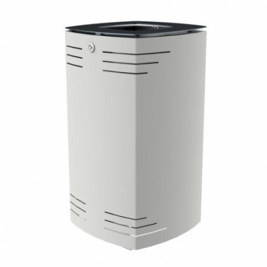Papelera cuadrada en acero galvanizado, resistente y funcional, ideal para un uso intensivo en espacios públicos y comunitarios.
