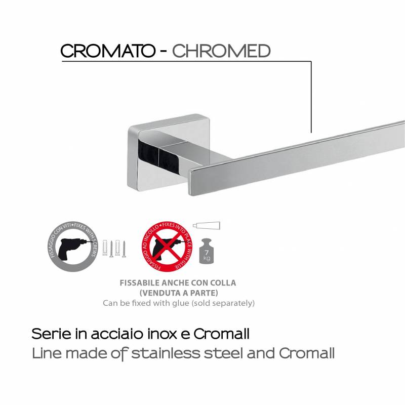 Cada elemento del set Atena está fabricado con materiales de alta calidad que garantizan durabilidad y resistencia al desgaste, incluso en entornos húmedos. El acabado cromado brinda un aspecto brillante y sofisticado que complementa una amplia variedad de estilos de decoración.