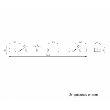 Sus dimensiones son 27x540x45mm (Alto x Ancho x Fondo)