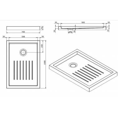 Plato de ducha de 100x70 mm con ala de 7'5 cm modelo Piano marca Unisan